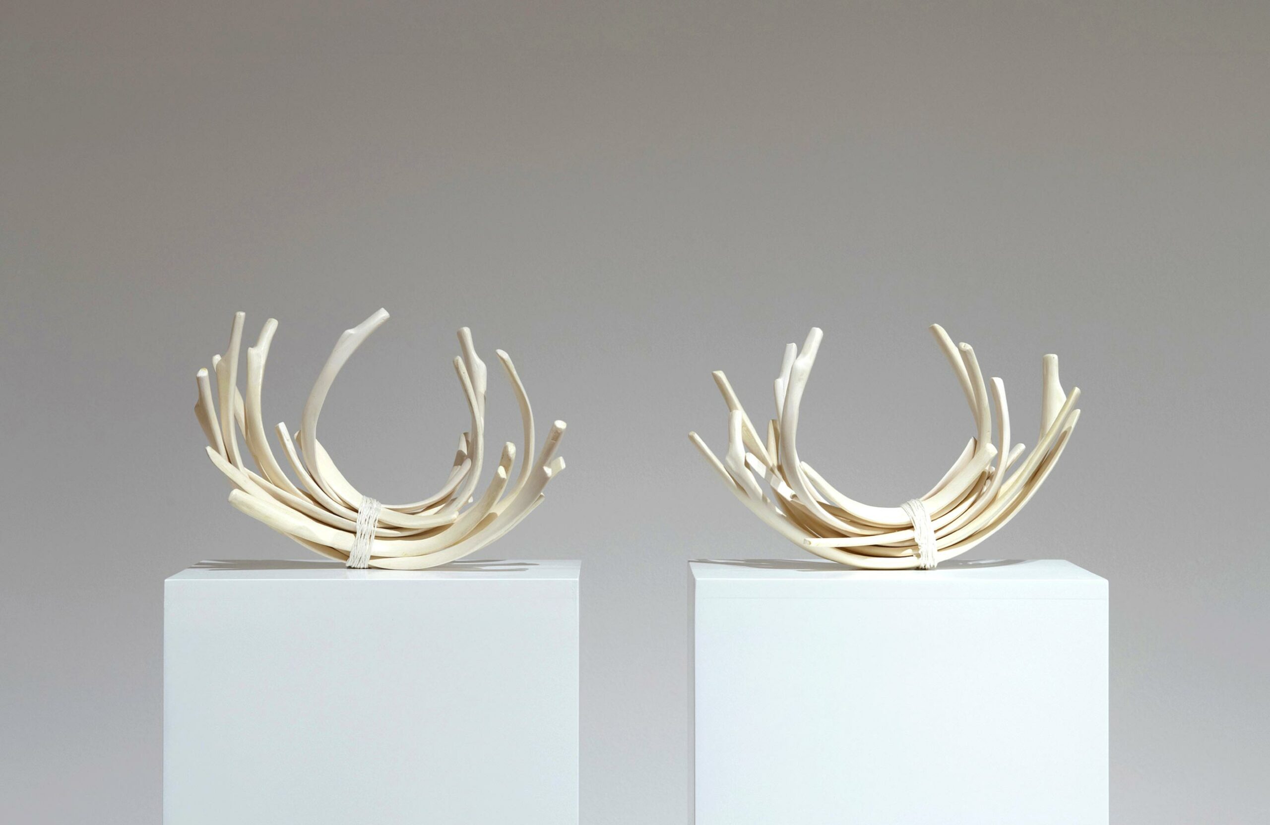 Les éléments des fagots, tous singuliers car façonnés manuellement, semblent réalisés en ivoire : l’artiste a patiemment travaillé la porcelaine pour évoquer ce matériau dans la volonté de suggérer la matière os.